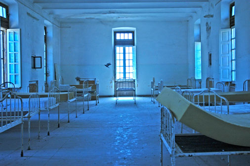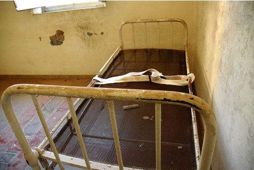 Ho fogli sparsi di cartelle cliniche, abbandonate senza custodia, quaderni, una cintura di contenzione, un letto, chiavistelli, e oscure maschere che permettevano agli infermieri di spiare senza essere visti all’interno delle camere delle e dei recluse/i. Attraverso le immagini può essere ricostruita una ipotetica storia di chi ha vissuto all’interno di quei luoghi, che sembrano acquisire una quiete allagata, tipica del dopo naufragio.