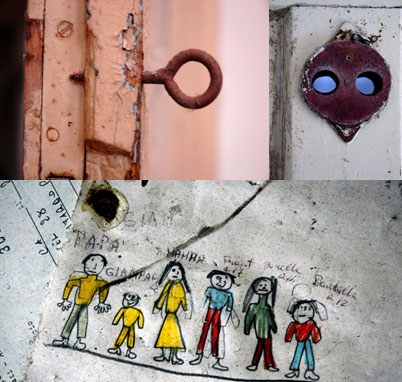 Architetture simili, e luoghi di confine all’interno delle città o nelle estreme periferie, portano tutte lo stesso stigma: rimangono a galla, come in un porto sepolto, alcuni effetti personali, valigie, lettere, scritte sui muri, e l’odore acre della polvere che si posa su tutte le cose, cristallizzandone il tempo.