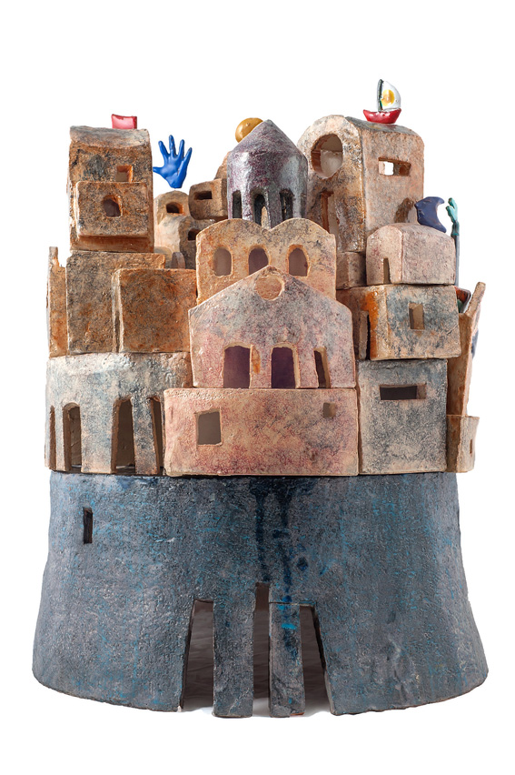 Le riconosci subito, le Terre Alte di Marina Cianetti, pezzi di ceramica che raccontano un mondo mediterraneo – di case, mare, pesci, colline – riconoscibile, amato, familiare. Eppure Marina, che ha studiato a Palermo e Napoli, poi allieva del ceramista Nino Caruso, di questo mondo comune fa una creazione esclusiva, monta e smonta i segni di un linguaggio quasi popolare fino a farne una storia tutta sua.