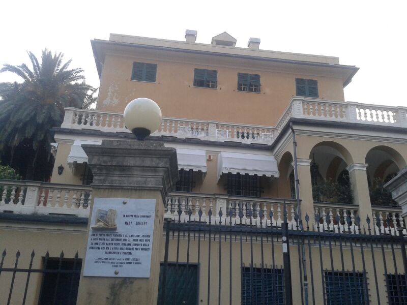 Quando Mary Godwin Shelley giunse a Genova nel 1822 col figlioletto Percy non possedeva molto denaro e lord Byron, amico di famiglia tanto da starle accanto durante la cremazione della salma del marito Percy avvenuta pochi giorni prima a Viareggio, l’aveva incaricata di trovare in città una villa per se stesso e un’altra, nelle vicinanze, che potesse ospitarla con il figlioletto Percy Florence. Così vivevano a pochi passi, lei a Villa Negrotto, lui a villa Saluzzo, in un tracciato lungo l’attuale via san Nazaro, che qualche decennio dopo Charles Dickens percorrerà proprio sulle tracce dei poeti romantici inglesi.