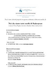 12 Dicembre 2017 di SIL - SOCIETÀ DELLE LETTERATE 0 Comments PASSAPAROLA: Scarica il programma di “Noi che siamo tutte sorelle di Shakespeare” in pdf cliccando qui PUOI SEGUIRE LA SIL SU: PASSAPAROLA: CategorieAltroSegnaliamoTagElena BiaginiGiovanna BandiniLiceo Statale Maria Montessori di RomaMaria Cristina SchioSTUDENtiAMO al Montessori IL MOSAICO DELLA MEMORIA Tutti gli articoli Sovrane. L’autorità femminile al governo 0 Comments 0 Pings & Trackbacks Lascia un commento Annulla rispostaComment (required)Name (required) Email (required) Website