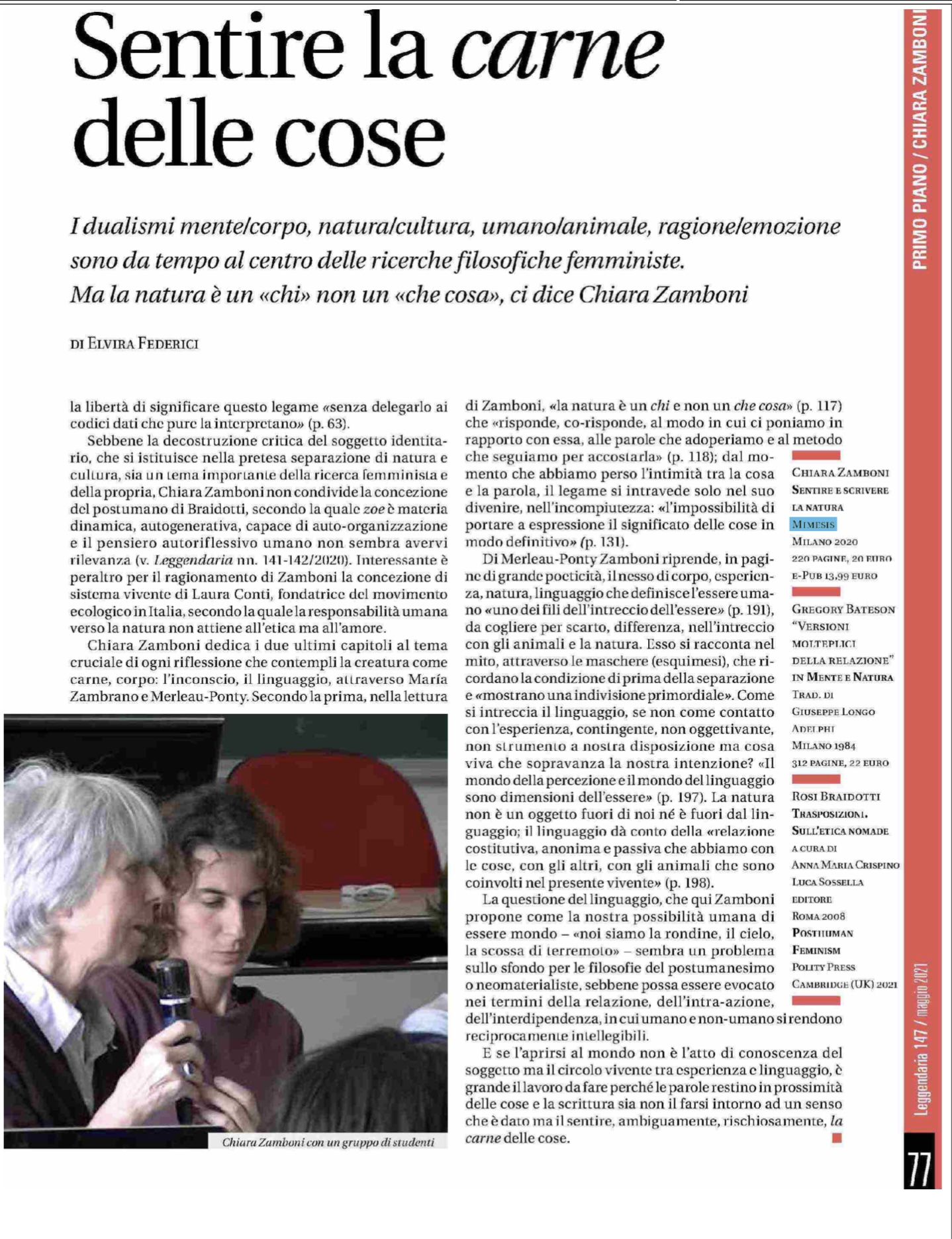 di Elvira Federici su Sentire e scrivere la natura di Chiara Zamboni in Leggendaria 147